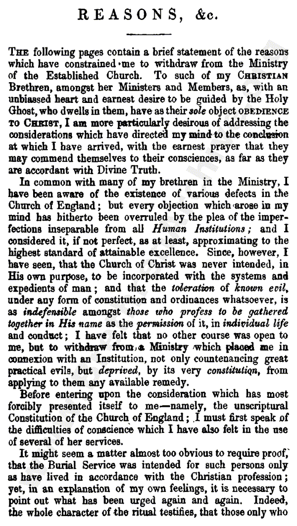 Reasons for Withdrawing from the Church of England - Borlase