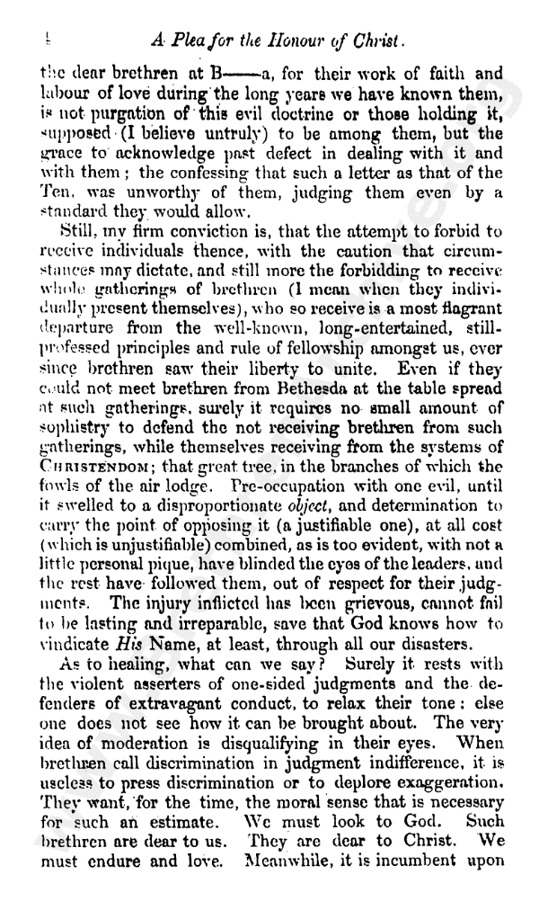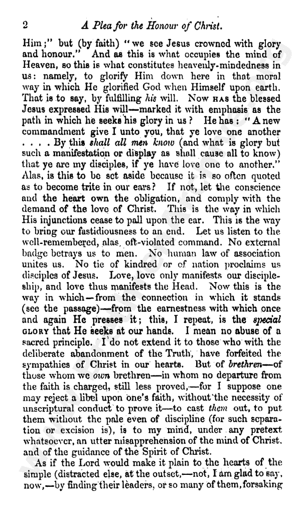A Plea for the Honour of Christ