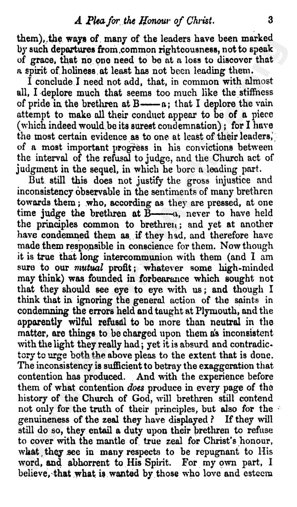 A Plea for the Honour of Christ