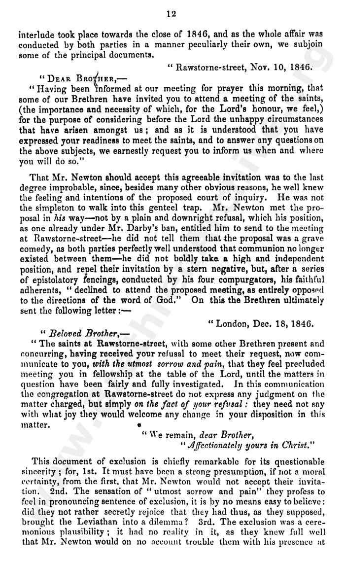 The pamphlet's bookseller/printer/publisher was Benjamin Lepard Green (c.1825 - 96) who appears to have had Baptist sympathies. His son (1851 - 82, with a confusingly identical name) studied at Rawdon Baptist College but later became a Unitarian. S P Tregelles reckoned that the author of A Retrospect . . . had striven to be fair and non-partisan in his account and therefore deserved a balanced and dispassionate reply. Timothy Stunt.