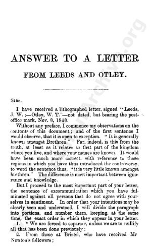 Answer to a letter from Leeds and Otley