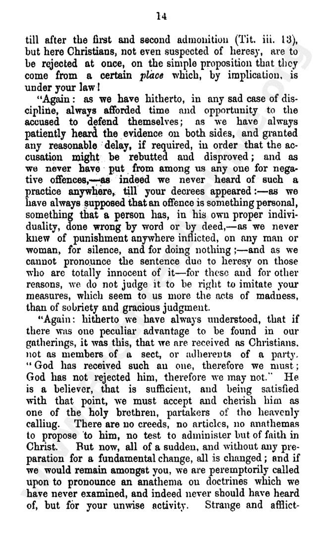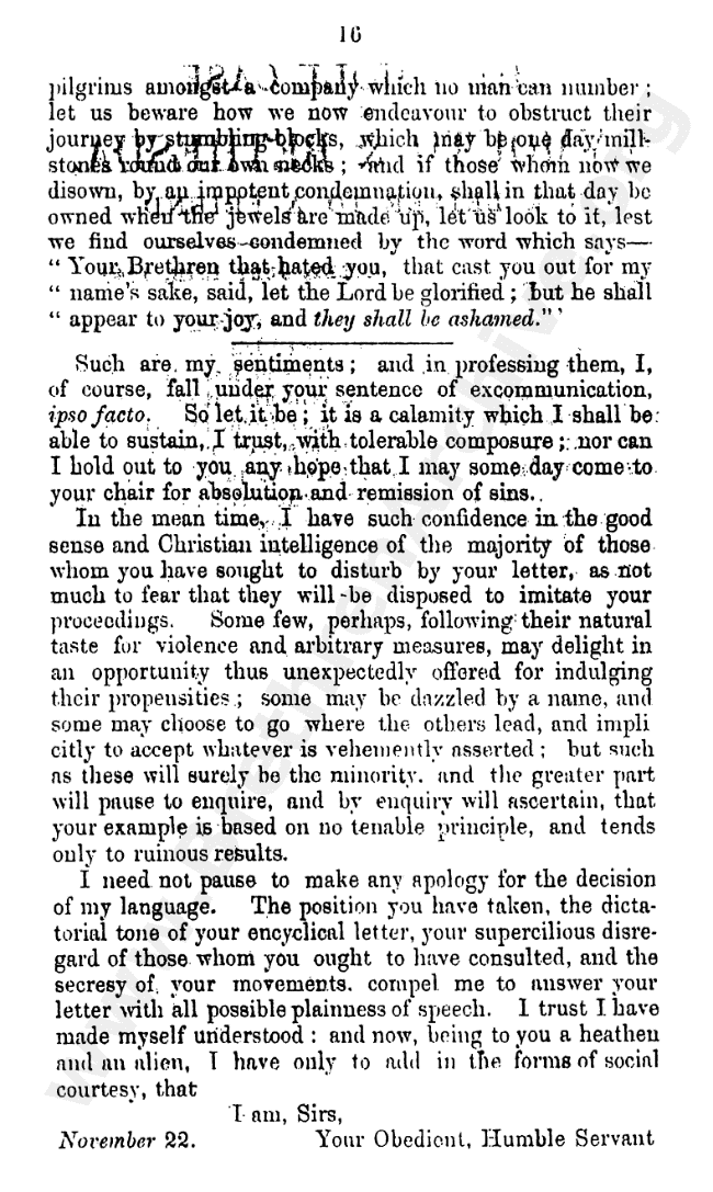 Interesting letter written against the division. Unsure who the author is, style is similar to those of Andrew Jukes, though signed diferently?