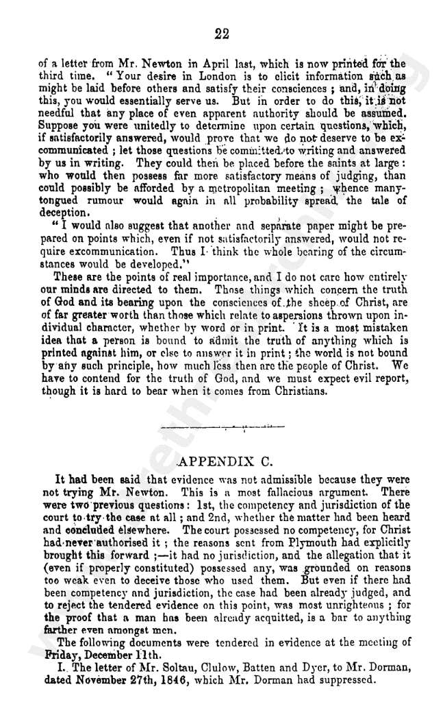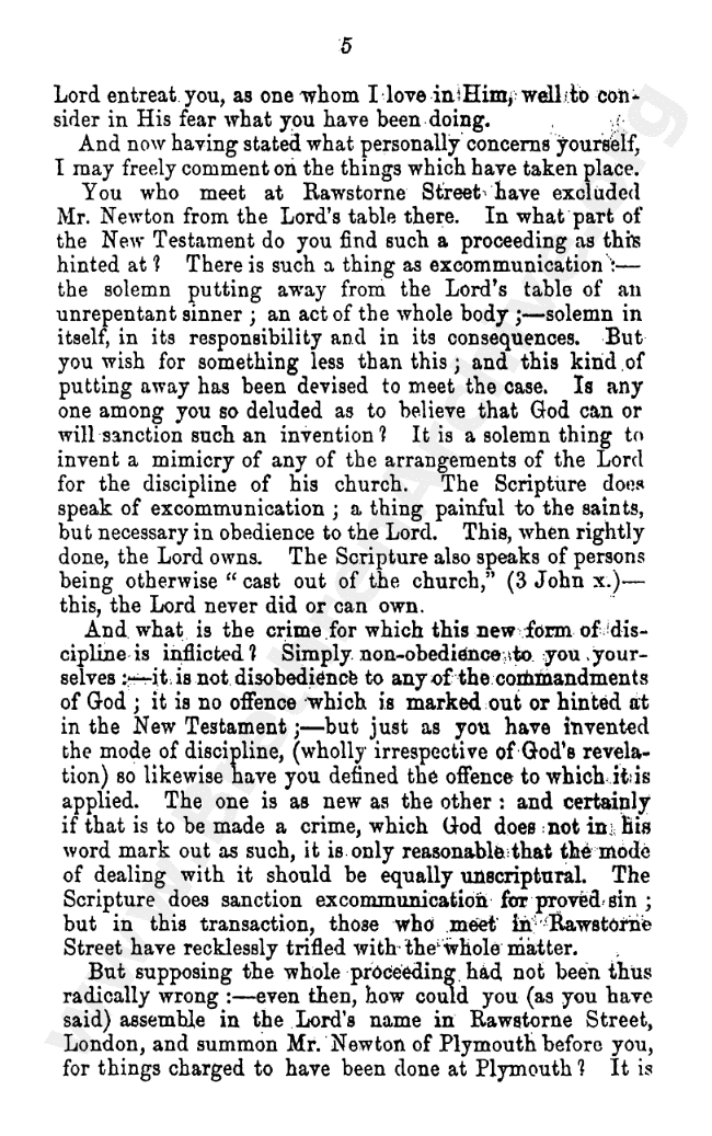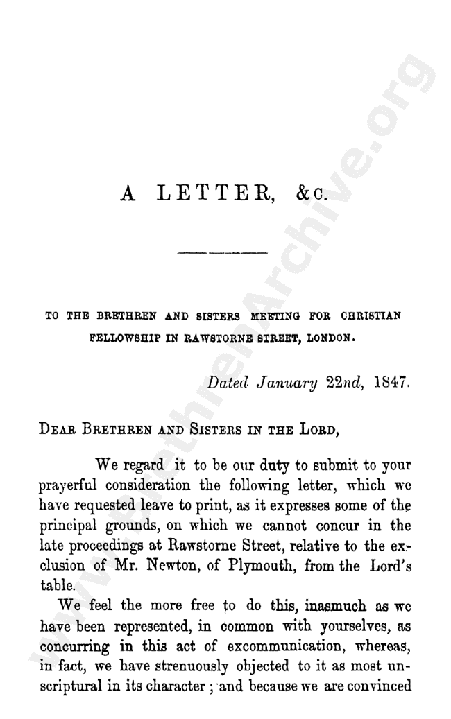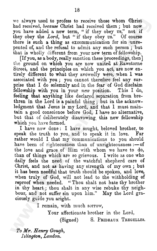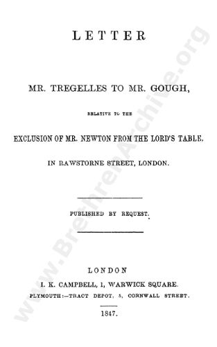 A Letter from Mr. Tregelles to Mr. Gough, Relating to the Esclusion of Mr. Newton from the Lord's Table, in Rawstorne Street, London