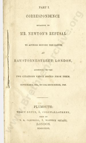 Correspondence relating to Mr. Newton's refusal to appear before the Saints at Rawstorne-Street - Part 1