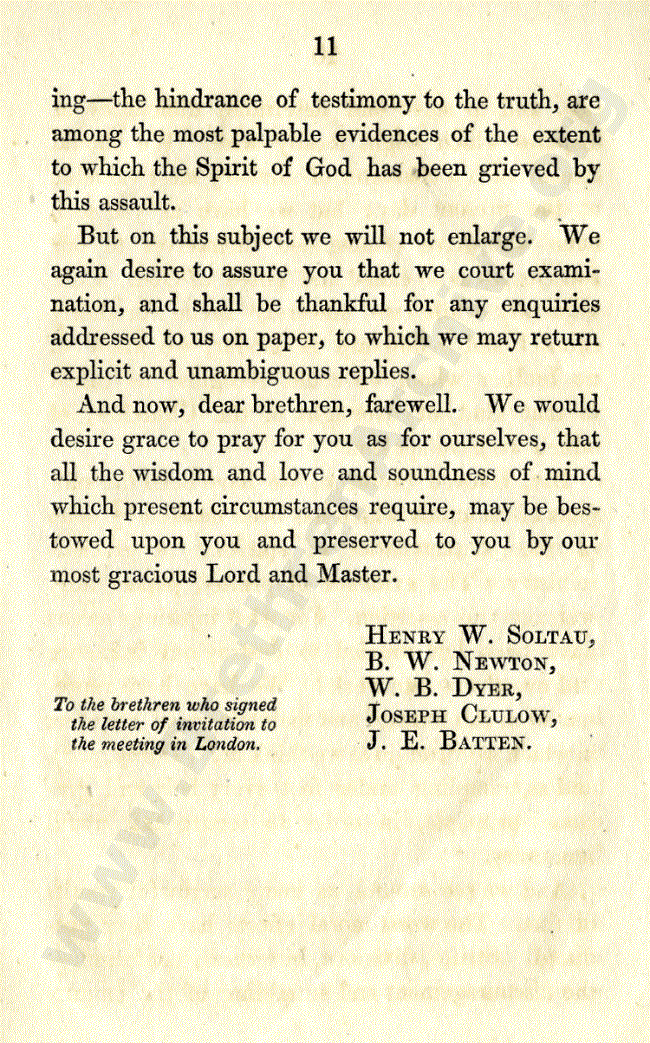 Letter from Saints in Plymouth to London