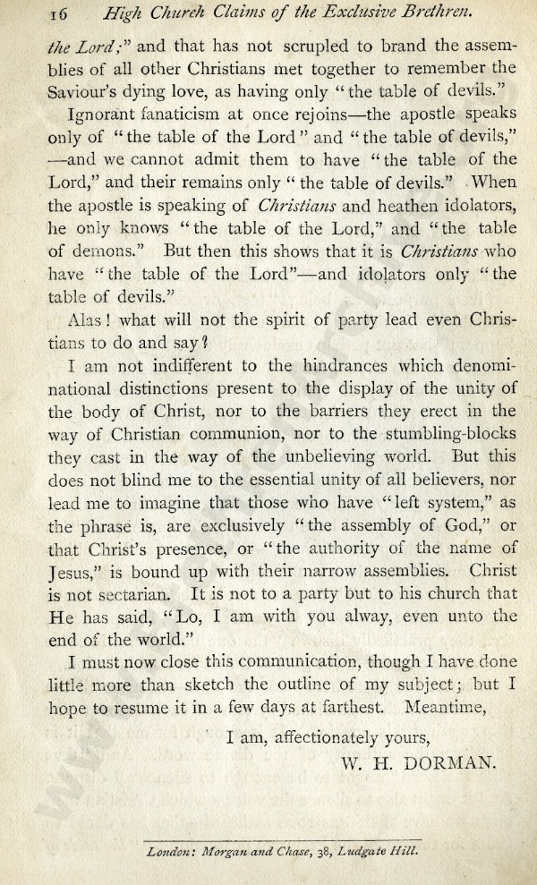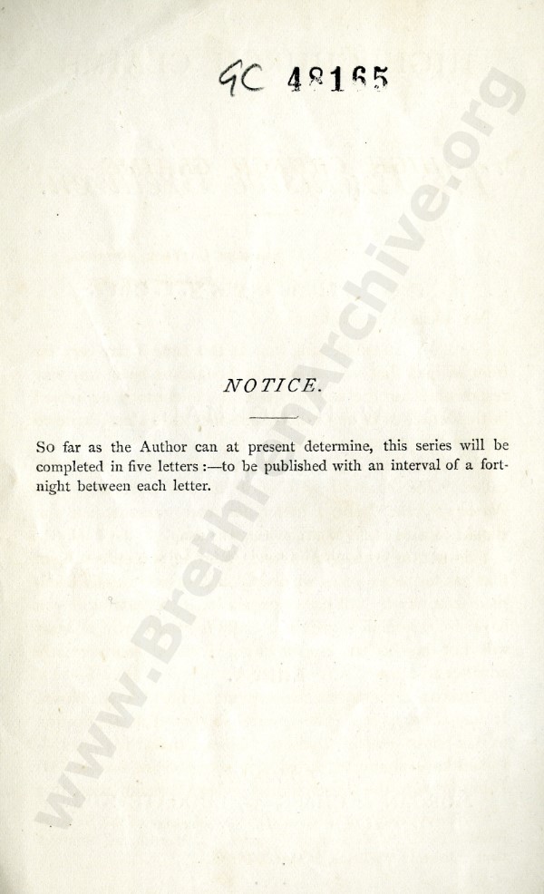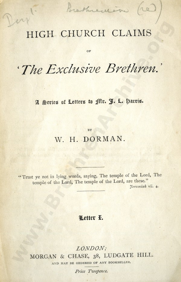 High Church Claims of 'The Exclusive Brethren', A Series of Letters to Mr J.L. Harris - Letter 1