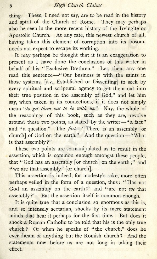High Church Claims of The Exclusive Brethren - Letter 1