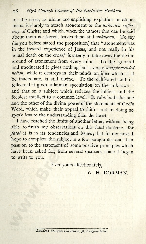 High Church Claims of 'The Exclusive Brethren', A Series of Letters to Mr J.L. Harris - Letter 5