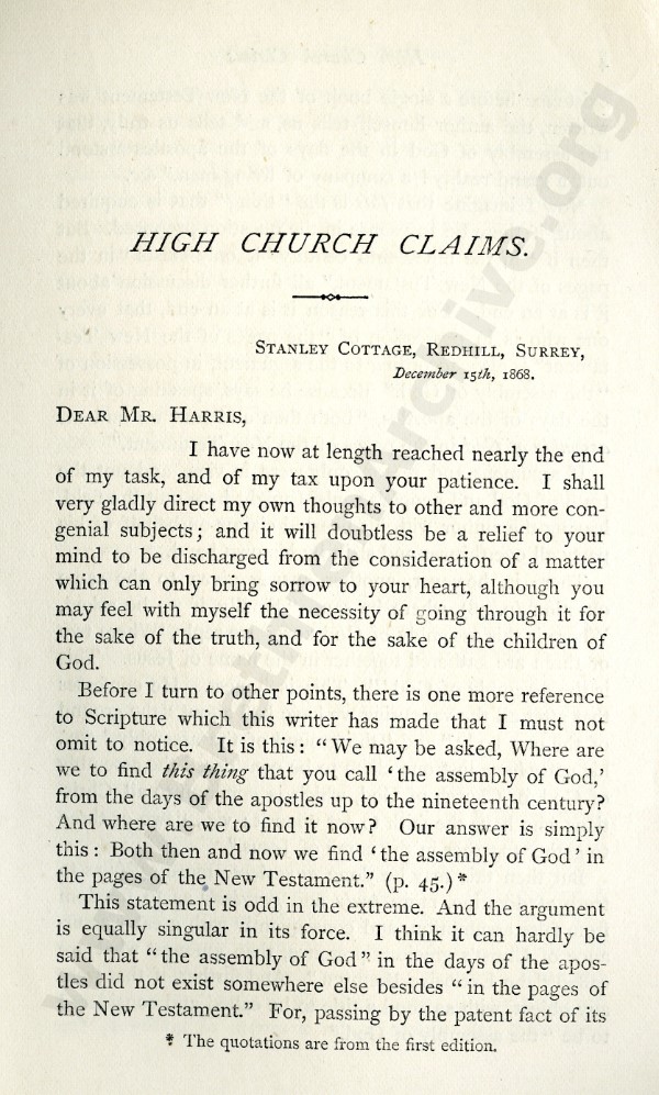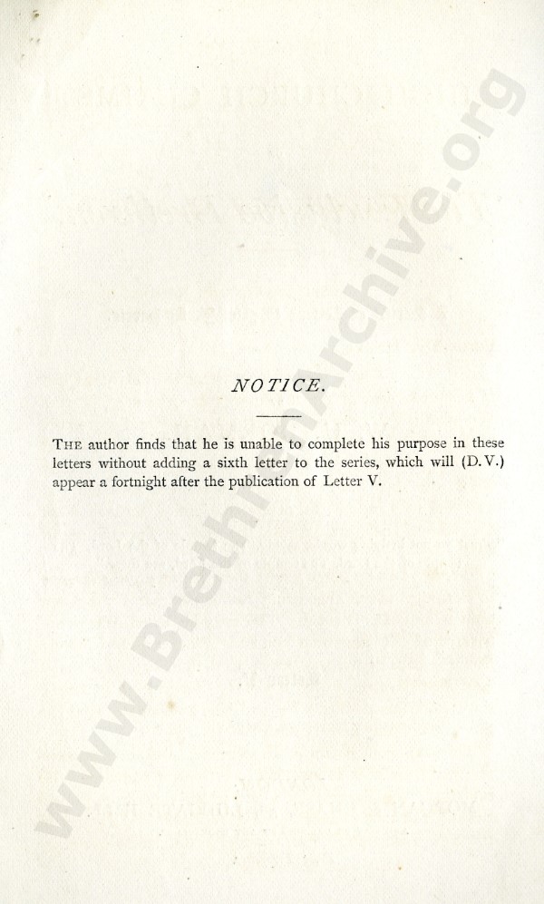 High Church Claims of 'The Exclusive Brethren', A Series of Letters to Mr J.L. Harris - Letter 5
