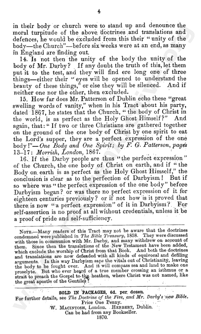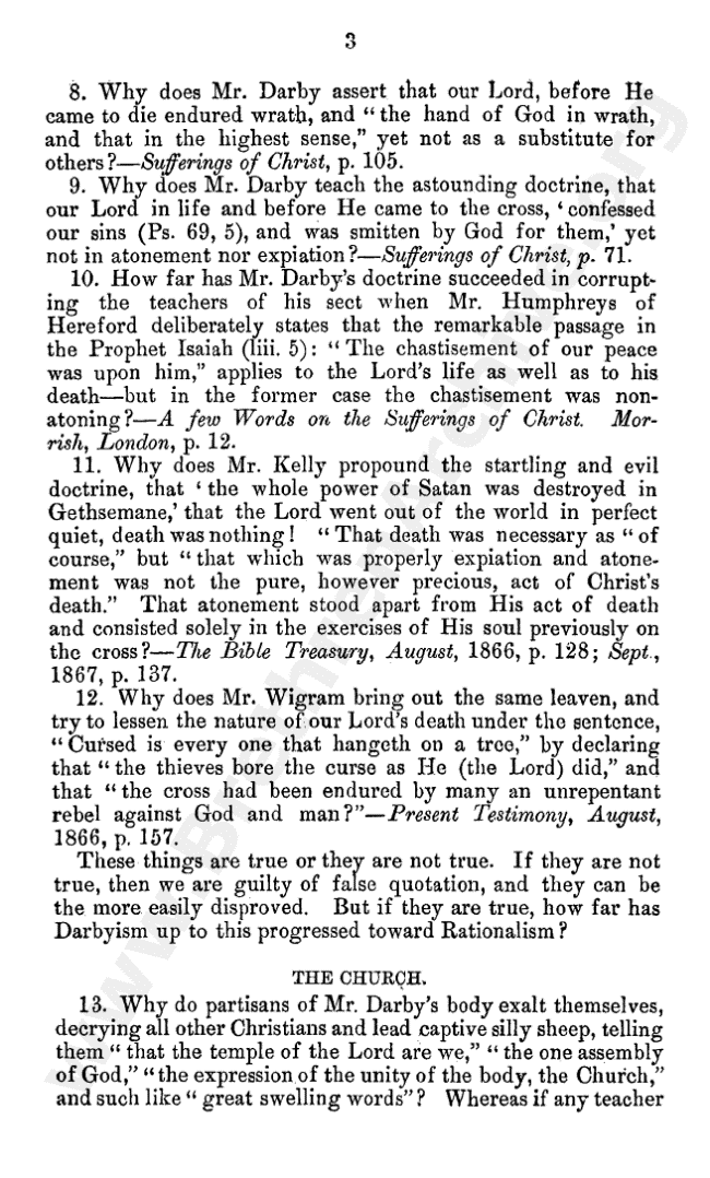 Sixteen Questions on the Rationalistic and Ecclesiastic Tendencies of Darbyism