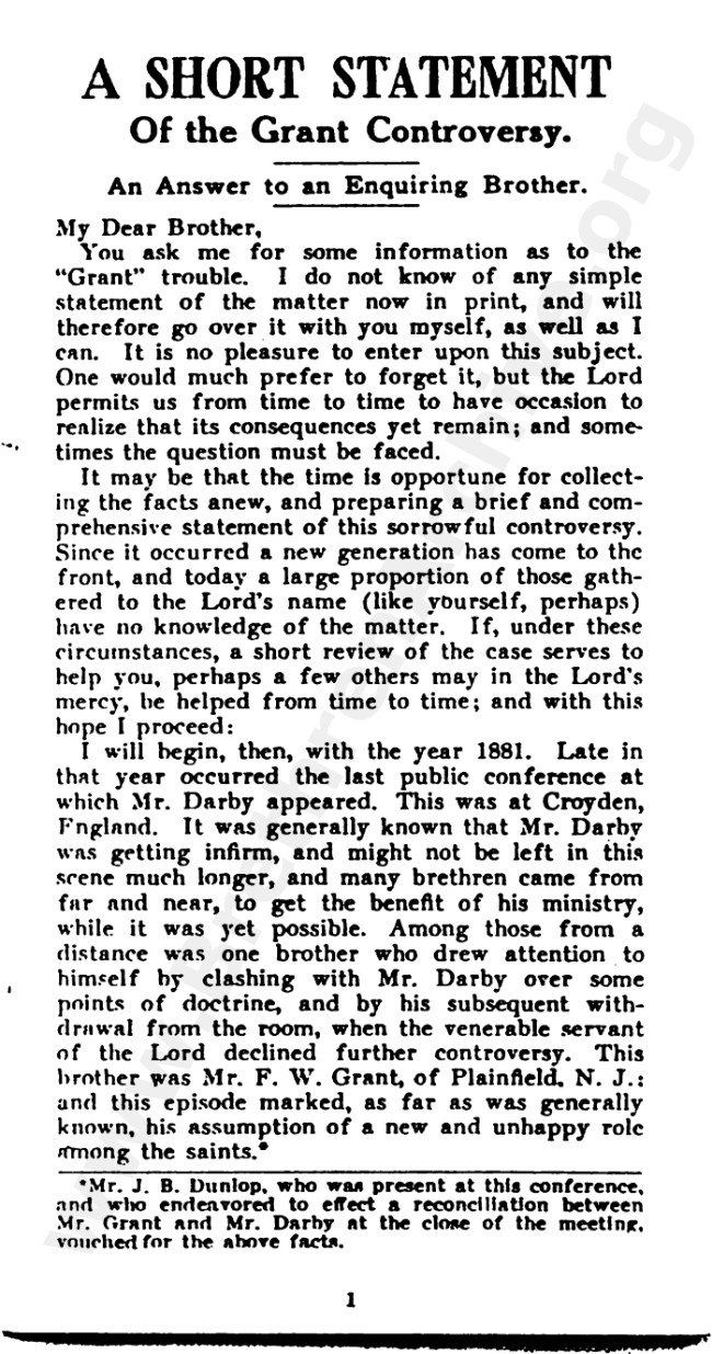A Short Statement of the Grant Controversy