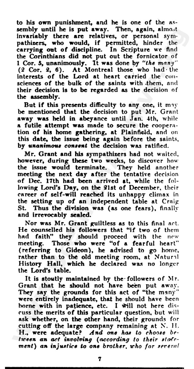 "An Answer to an Enquiring Brother" circa 1915 - Partisan piece written against F.W. Grant