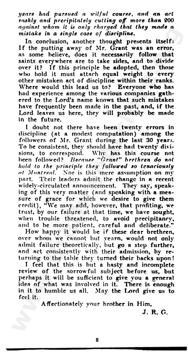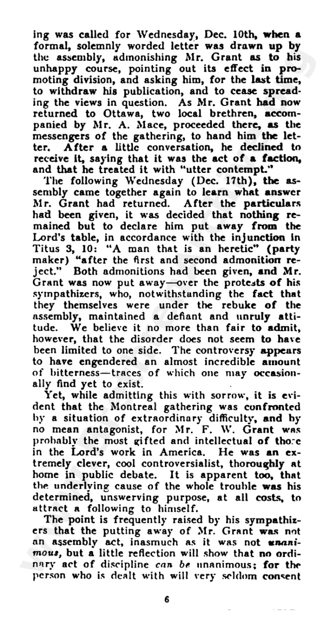 "An Answer to an Enquiring Brother" circa 1915 - Partisan piece written against F.W. Grant
