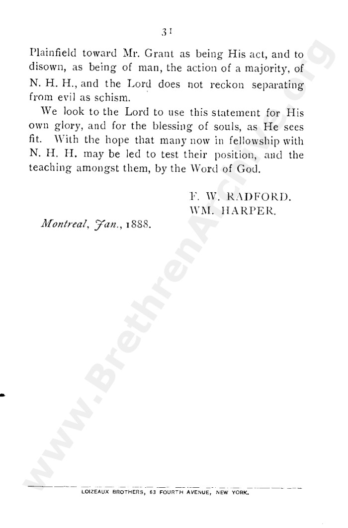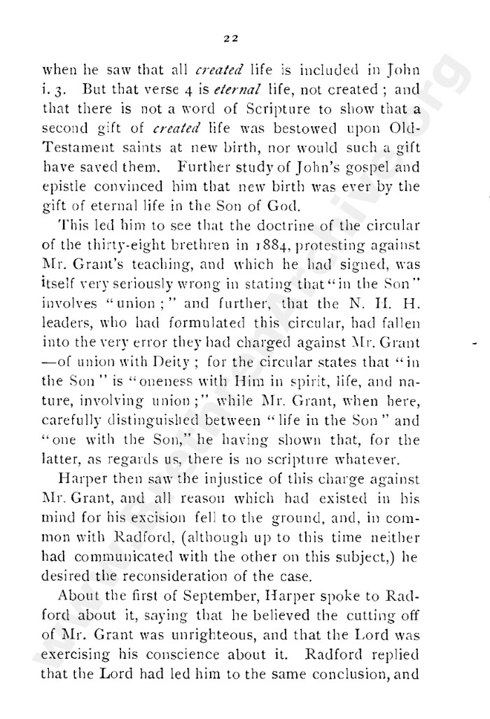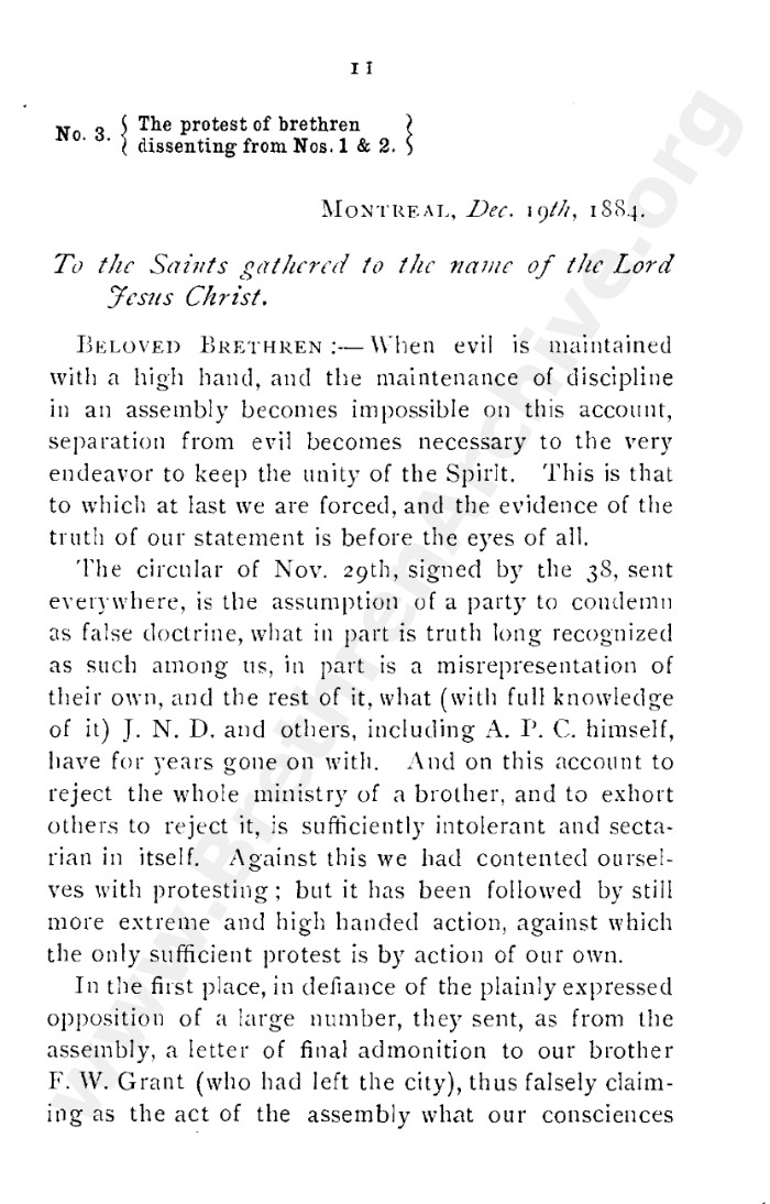 A collection of papers that gives good insight into what is known as the Grant division. Thankfully in the reunion between the Grant and Kelly-Lowe brethren, the KLC brethren were free to acknowledge this act was 'sin and unrighteousness'. Amazingly the TW brethren will still hold this was 'of God', but their ecclesiastical position necessitates them to and shows the falsehood of the whole thing. Particularly liked this on the last page: "At the judgement-seat of Christ you cannot, as so many of you do now, shelter yourselves by saying the assembly decided, and you could not but concur. This may quiet your conscience here, but there "every one of us shall give account of himself to God." "