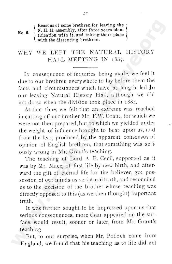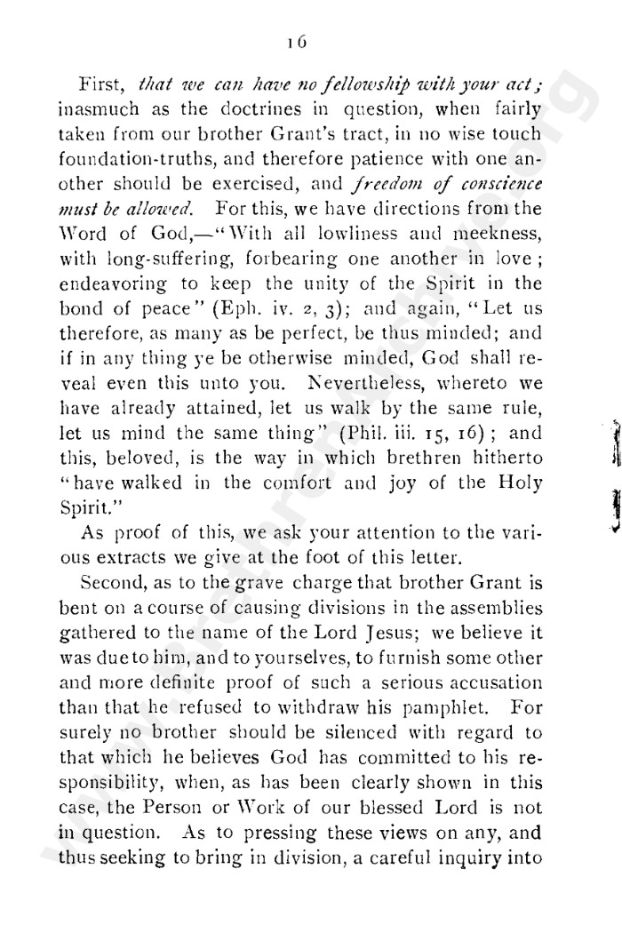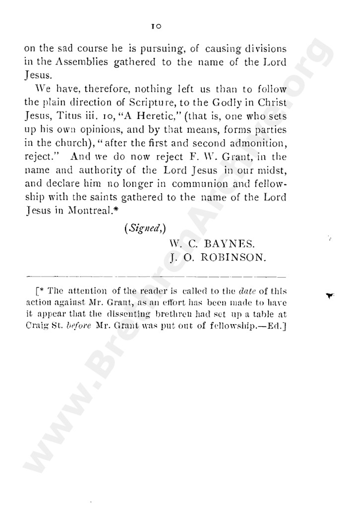 A collection of papers that gives good insight into what is known as the Grant division. Thankfully in the reunion between the Grant and Kelly-Lowe brethren, the KLC brethren were free to acknowledge this act was 'sin and unrighteousness'. Amazingly the TW brethren will still hold this was 'of God', but their ecclesiastical position necessitates them to and shows the falsehood of the whole thing. Particularly liked this on the last page: "At the judgement-seat of Christ you cannot, as so many of you do now, shelter yourselves by saying the assembly decided, and you could not but concur. This may quiet your conscience here, but there "every one of us shall give account of himself to God." "