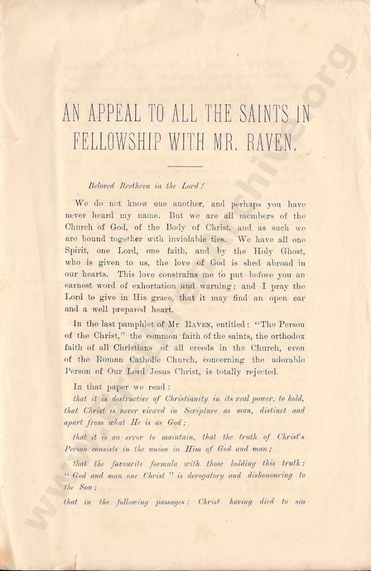 An Appeal To The Saints in Fellowship with Mr Raven