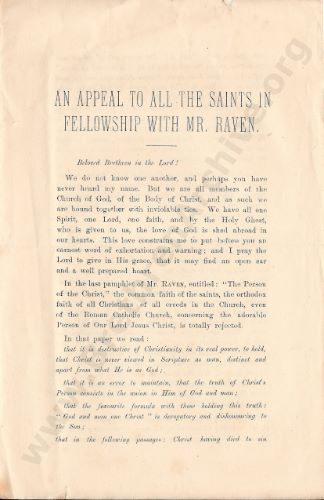 An Appeal To The Saints in Fellowship with Mr Raven