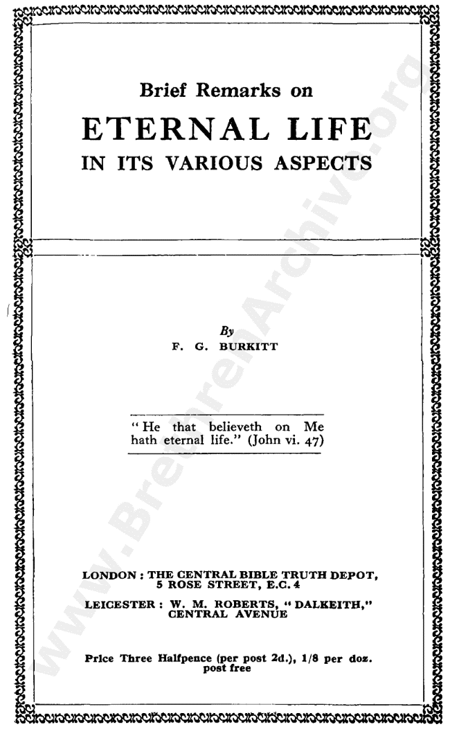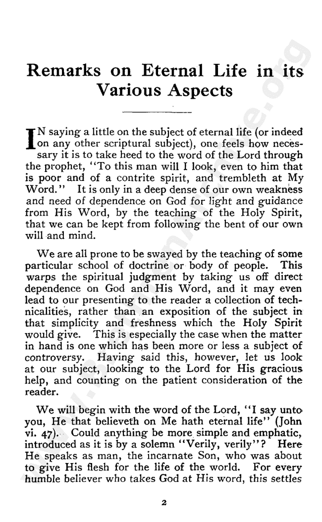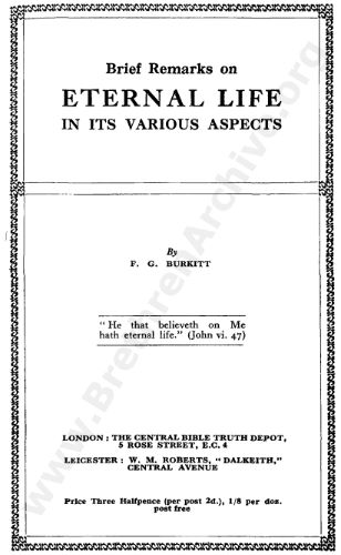 Brief Remarks on Eternal Life in Its Various Aspects