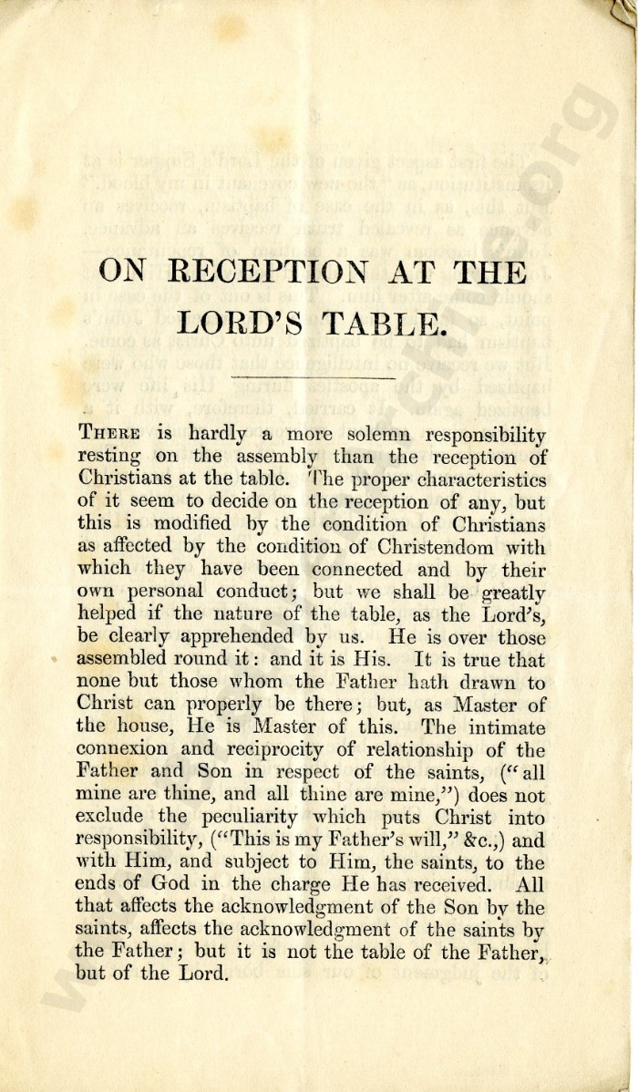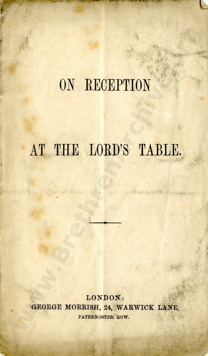 On Reception at the Lord's Table