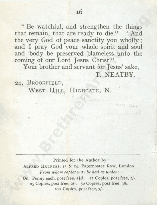 That’s right. And what’s in a preposition? T. Neatby by his own admission, gathered for many years with those who “gathered unto the Name of the Lord Jesus,” and then it changed for him.