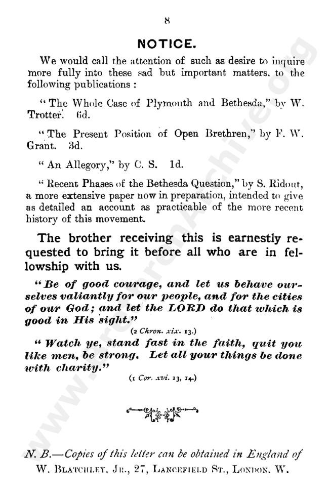 Letter signed by many American brethren, reprinted and commended to the Stuart fellowship in the UK