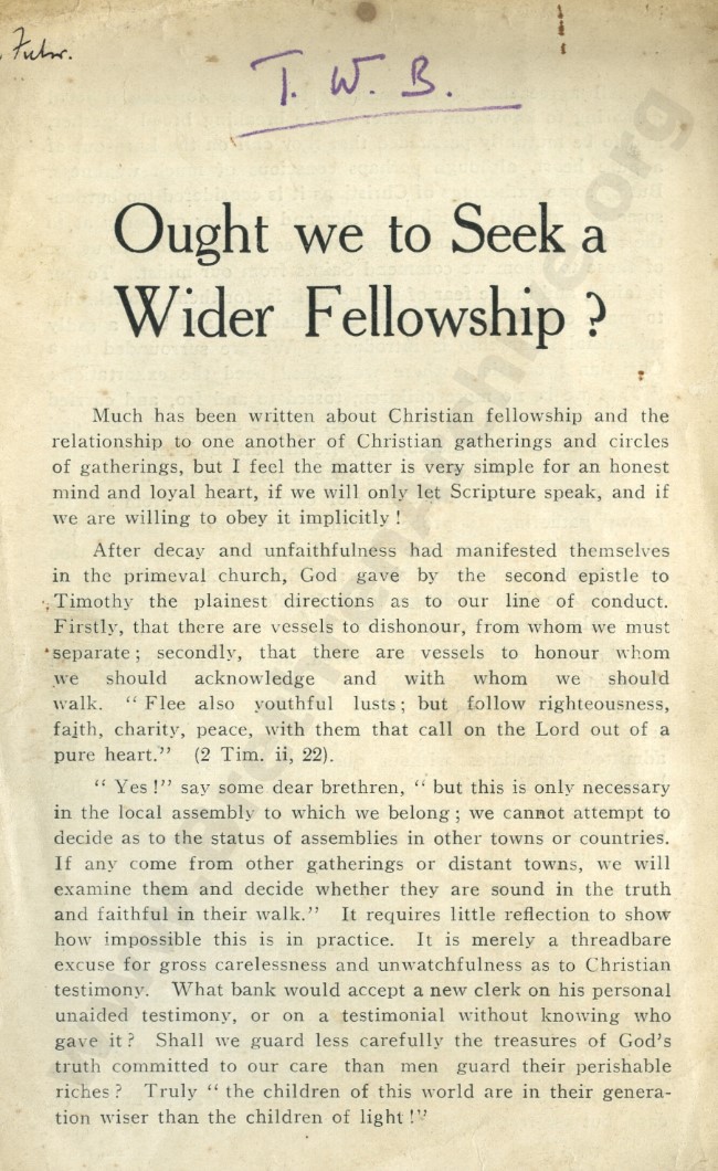 Ought we to Seek a Wider Fellowship?