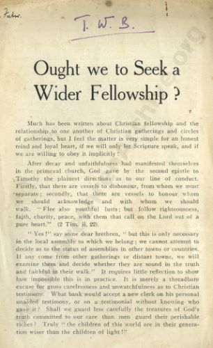 Ought we to Seek a Wider Fellowship?