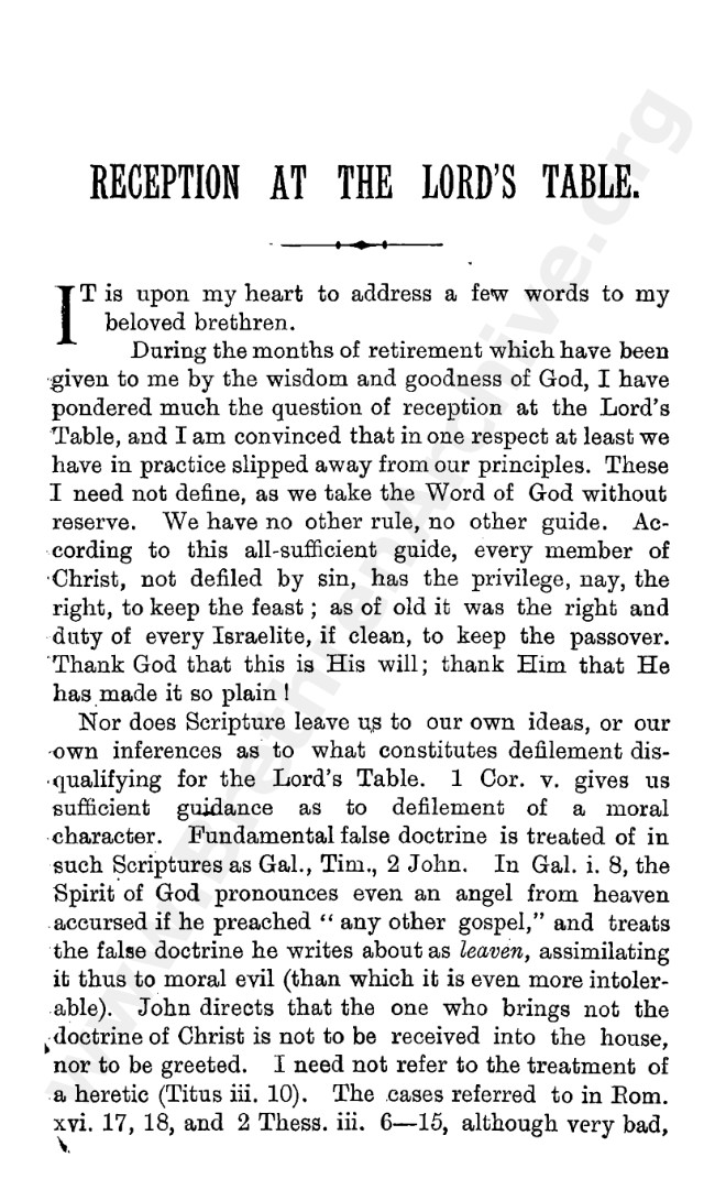 Reception at the Lord's Table