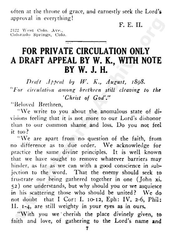 including A Draft Appeal by William Kelly (1908)