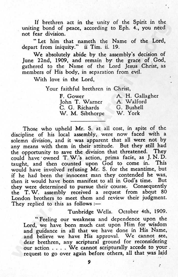 Brian, as I have been given to understand and have already mentioned, the brethren at 41 York Road, Tunbridge Wells, in a later generation owned that the decision regarding Mr Strange as wrong.