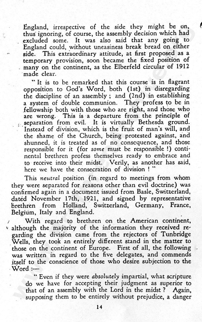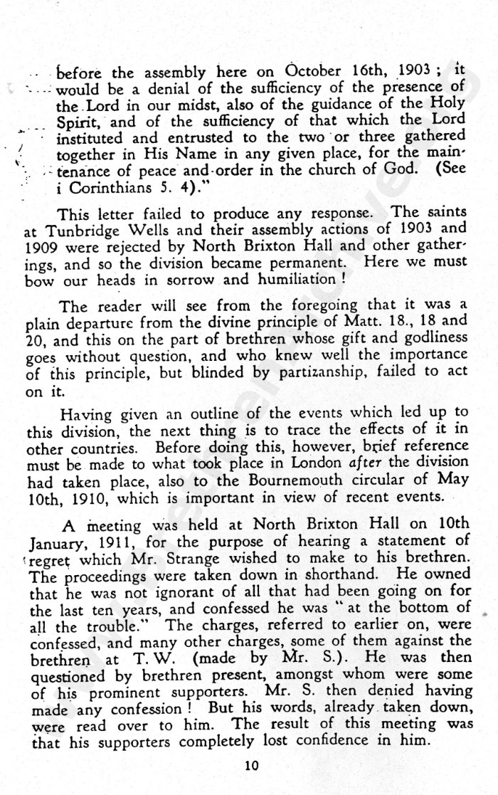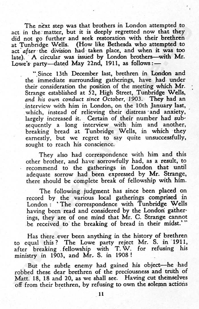 Brian, as I have been given to understand and have already mentioned, the brethren at 41 York Road, Tunbridge Wells, in a later generation owned that the decision regarding Mr Strange as wrong.