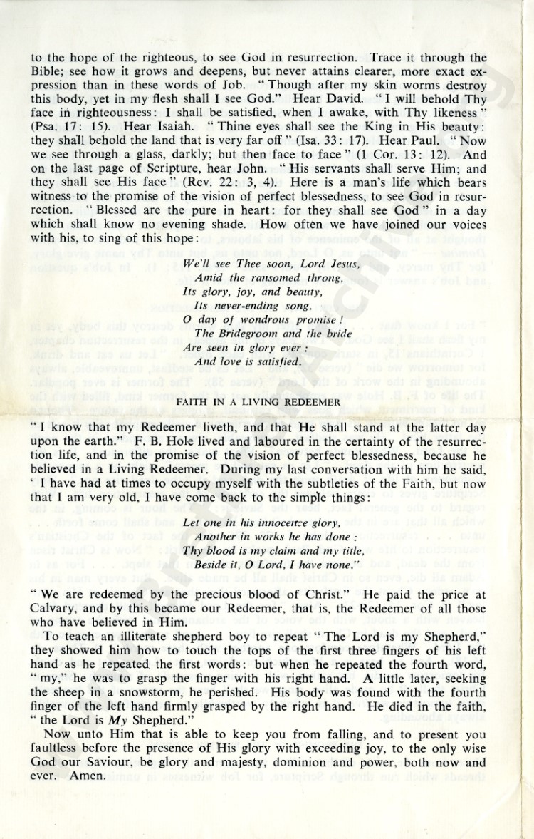 Frank Binford Hole - Address at Funeral