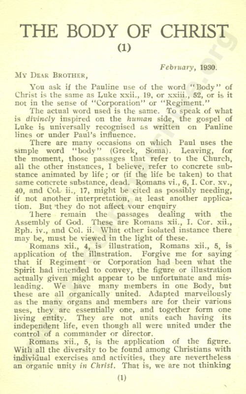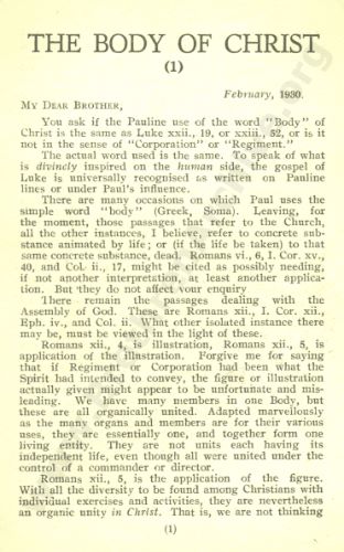 Three Letters on 'The Body of Christ'