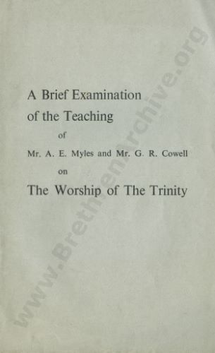 A Brief Examination of the Teaching of A.E. Myles and G.R. Cowell on The Worship of the Trinity