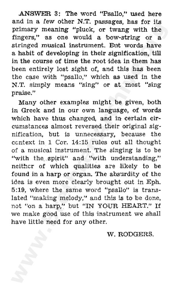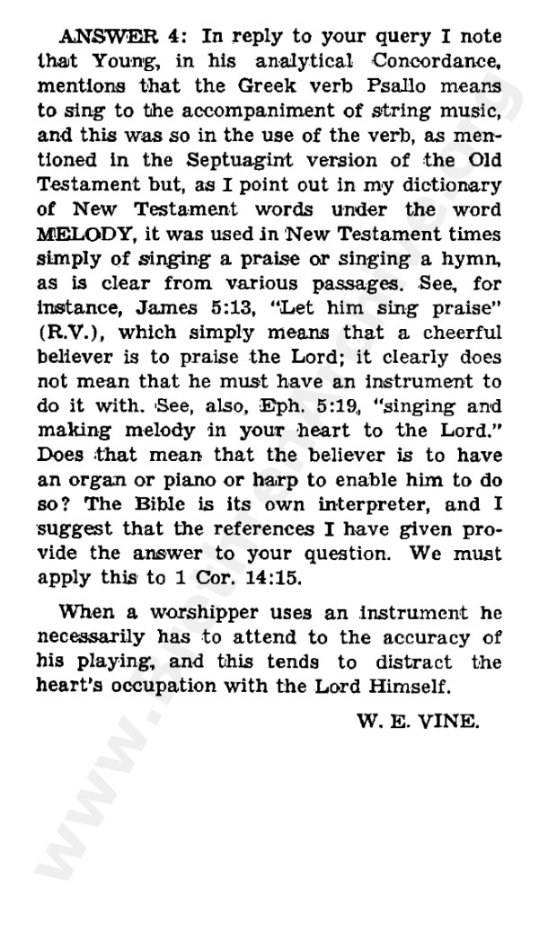 Four Answers to a Question on the Use of Instrumental Music