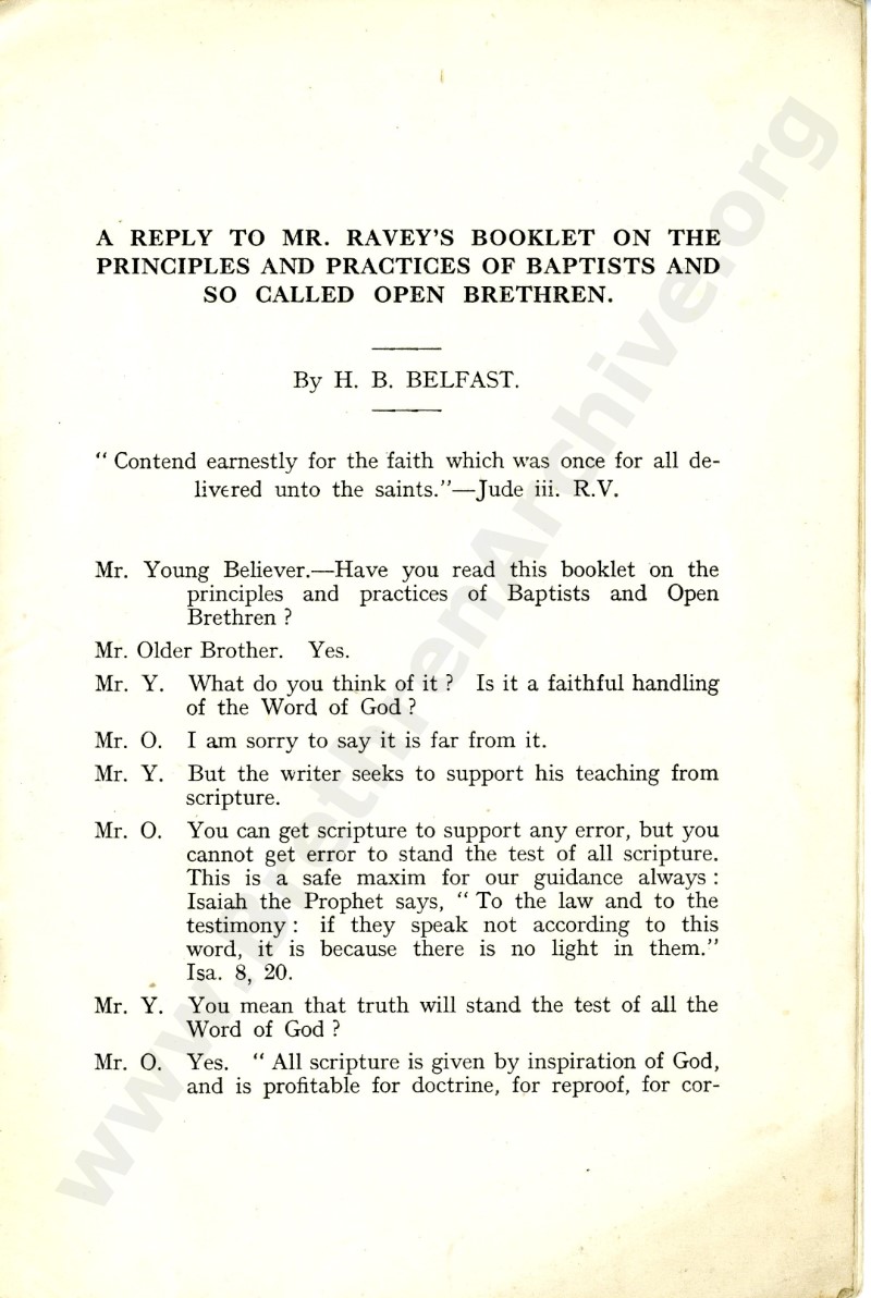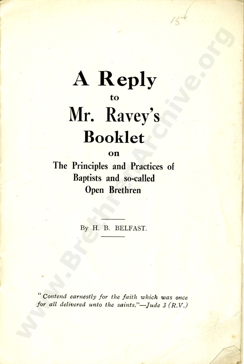 HB was Hawthorne Bailie. For a short account of his life and work see J G Hutchinson's "Their Praise is in the Gospel", (earlier editions went by the titles of "Sowers Builders Reapers" and "Irish Evangelists now with the Lord") Tom Bentley when a young believer utilised this pamphlet in arguing about Church Principles with the young Sidney Maxwell (later of Vancouver), who was persuaded by the argument and was a respected evangelist and teacher in Canada in his later years.(see "A Biography on Tom Bentley", by Grace Bentley)