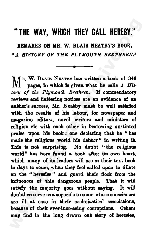 The page numbering arises from the review having originally been part III of a booklet "In defence of the truth : replies to some recent strictures on church subjects. [I. The church, (its calling, position, and destiny.) II. The old paths;(or, the things which remain.) III. "The way which they call heresy" (remarks on Mr.W.Blair Neatby's book)]" A copy of the booklet is held by the CBA in the John Rylands University Library, Manchester. Timothy Stunt