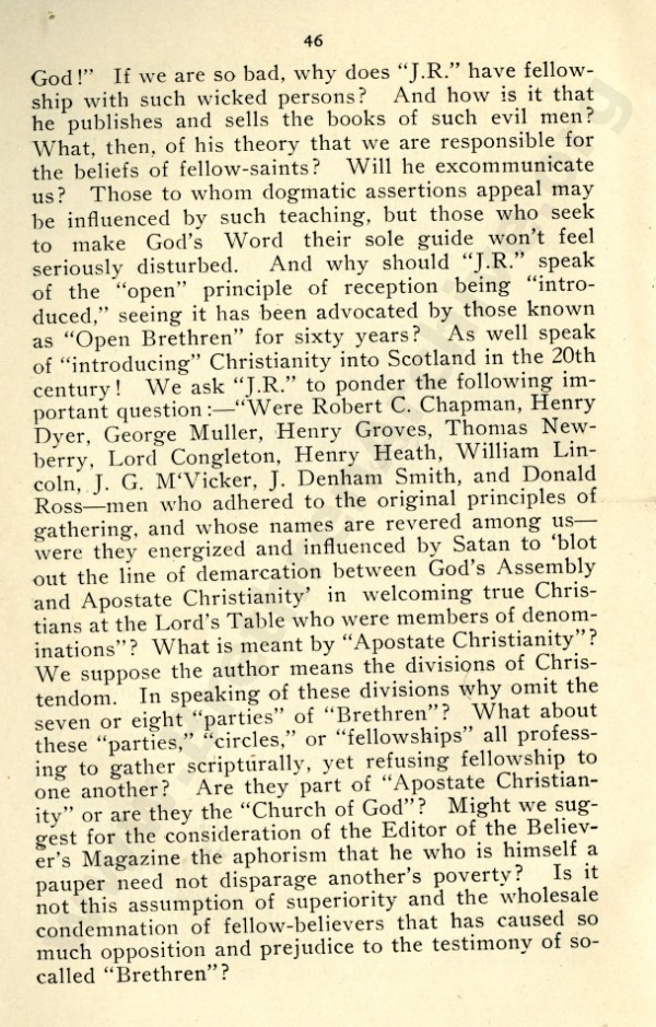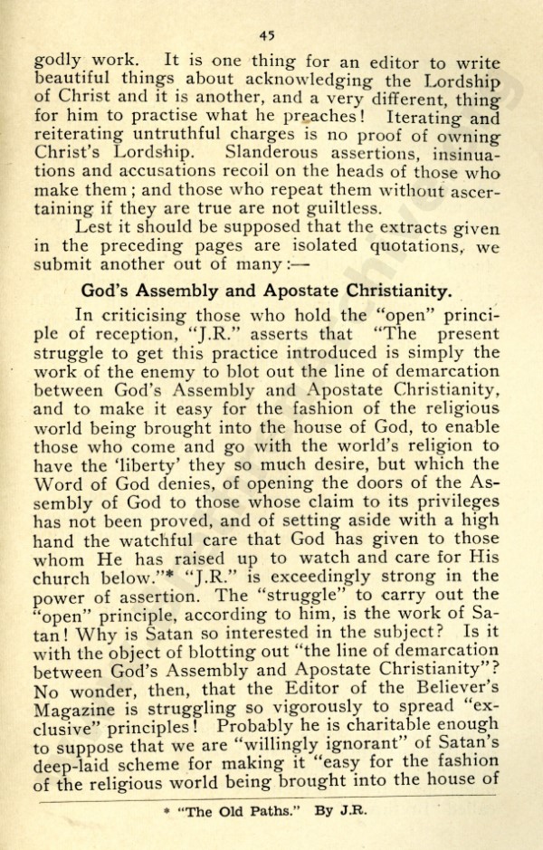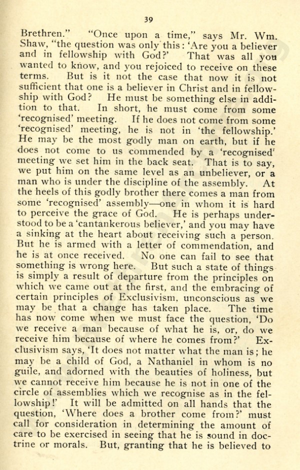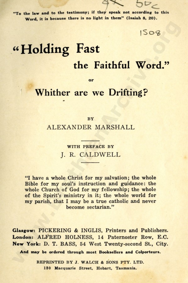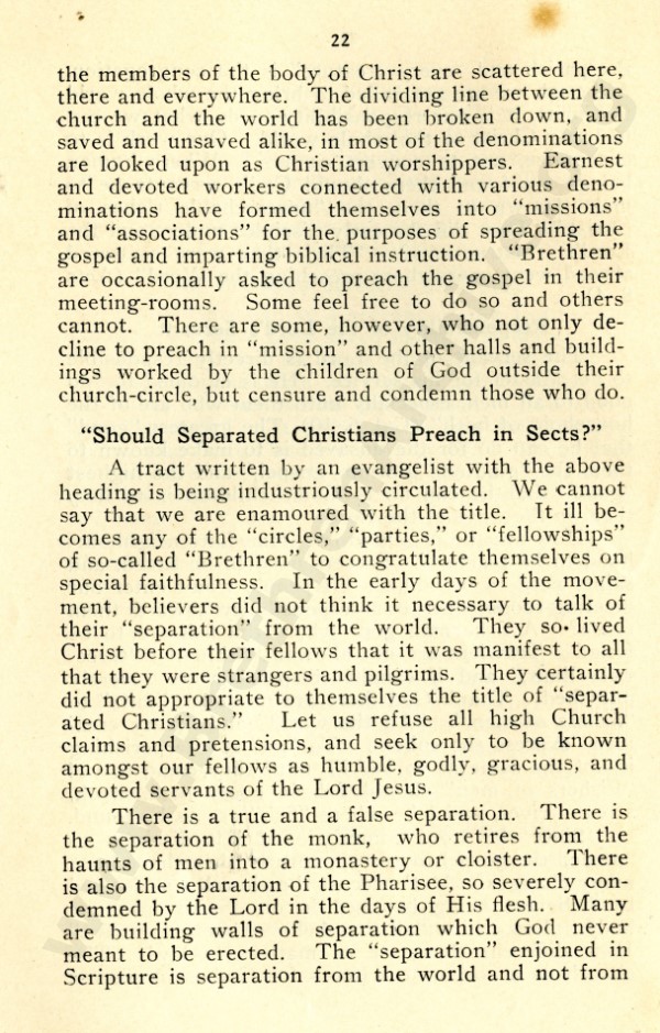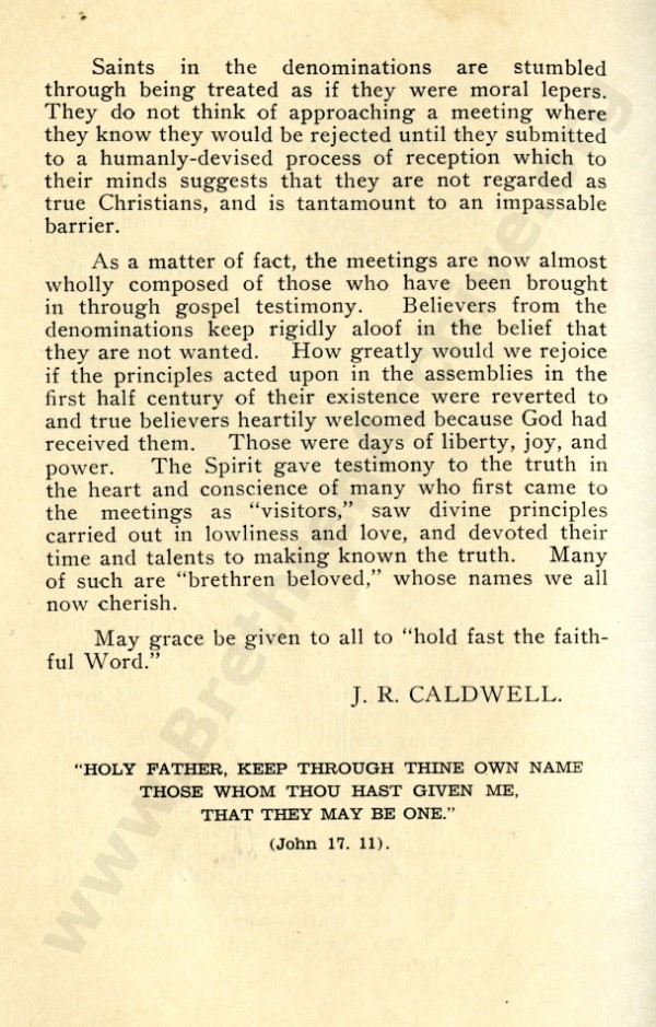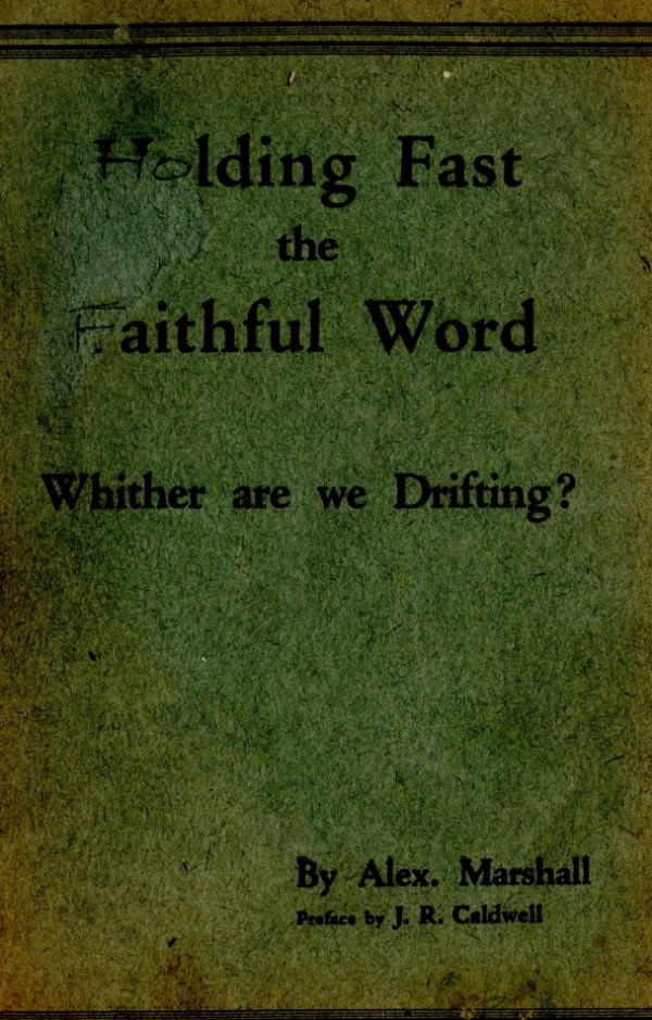Mr Marshall, and also J R Caldwell as can be seen in the preface, were concerned about an ecclesiastical notion that has by now spread throughout the "open" meetings, and was my reason for writing "Two Churches: the Question of the Church and Churches?"