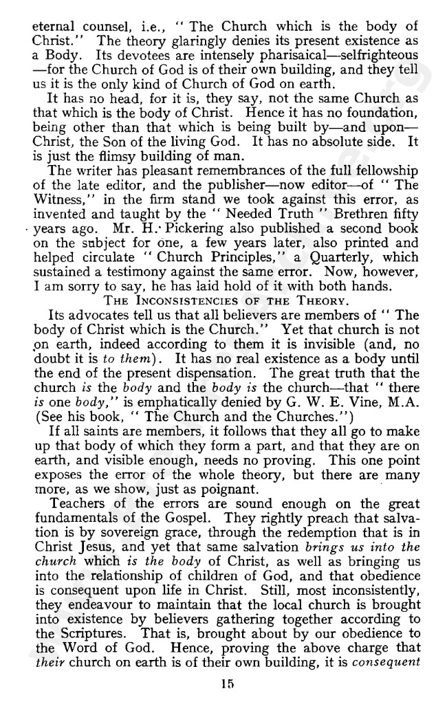 W R Lewis then joined with W E Vine and wrote “Wrong Ideas On the Church” by way of a response to WWF in March 1949, Mr Fereday responding to it in May of that year with an article bearing the same title.
