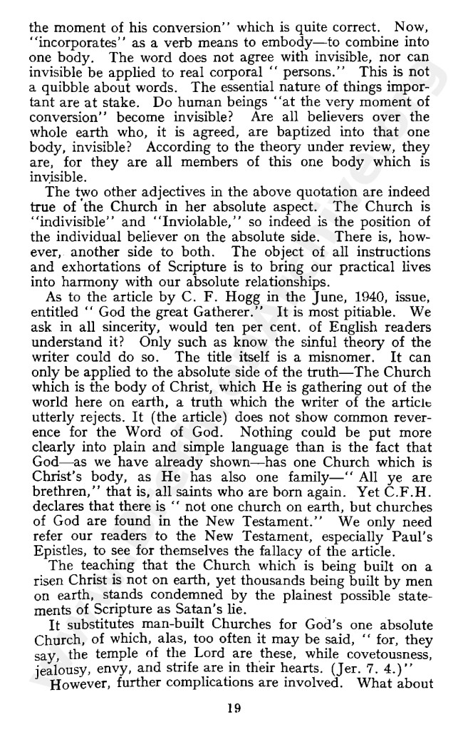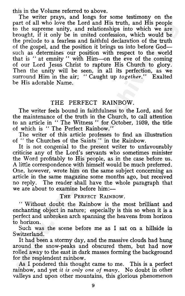 Mr Fereday's January 1949 article was later published as tract and was republished by Andrew Poots in the 1990s. It might be still available from him or from Chapter Two.