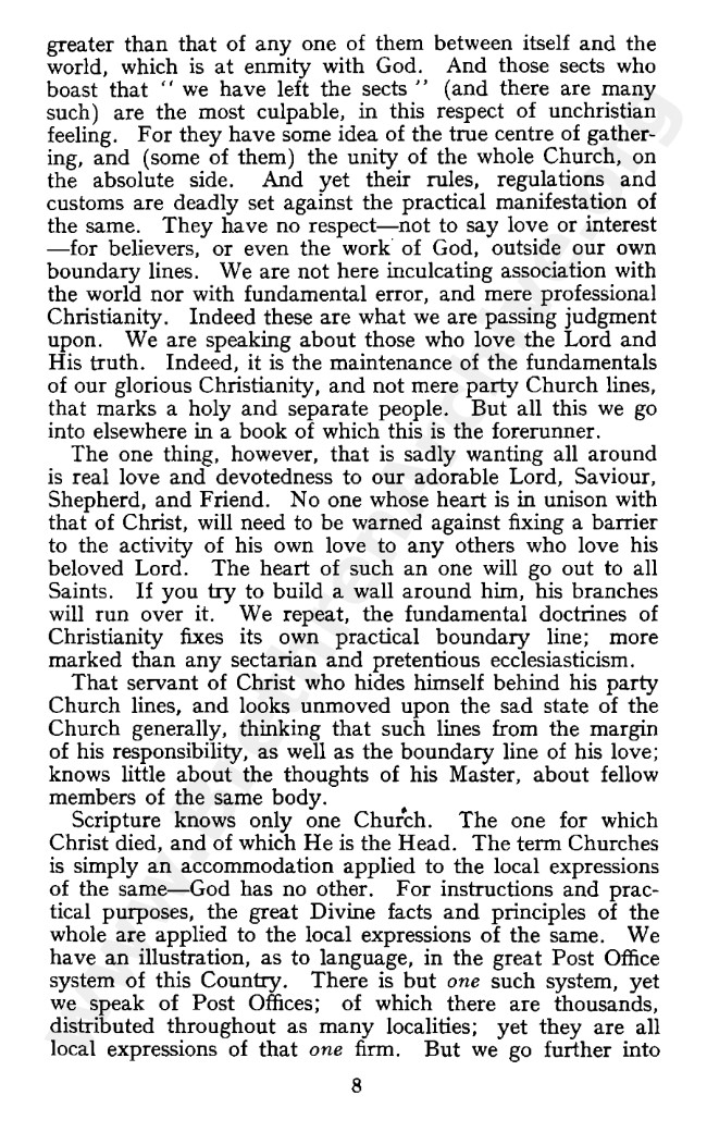 An article appeared in the November 1948 (?) issue of “The Harvester” by W E Vine which had the title “A Local Church in Scripture” to which W W Fereday responded with one having the title “Reverting to Sectarianism” in January 1949.