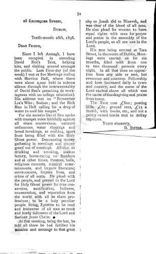 Letter Detailing Tent Meetings of David Rea in Dublin