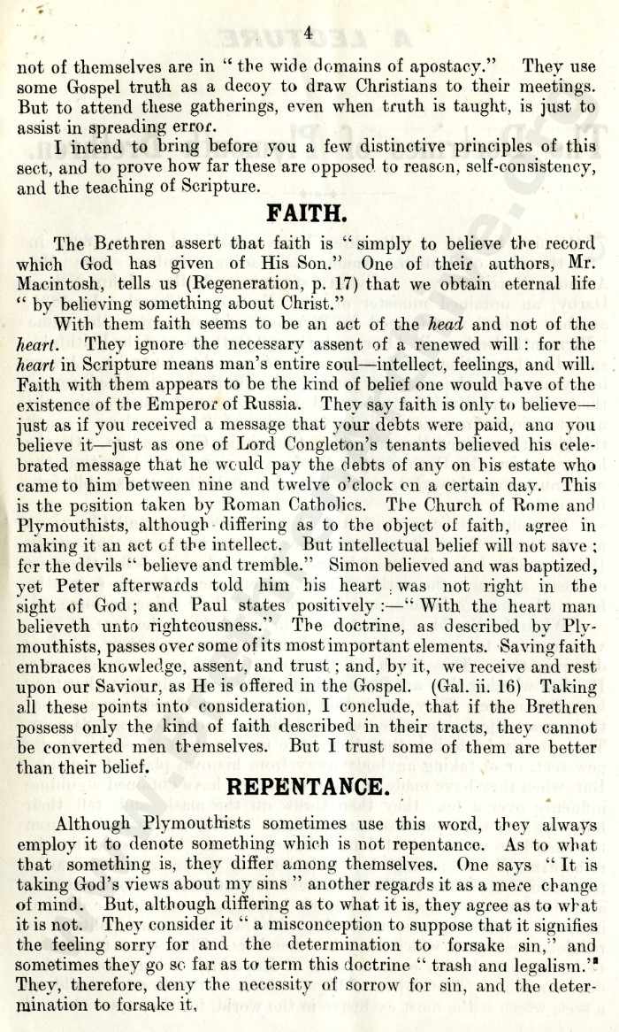 A Lecture on the Doctrines of the Plymouth Brethren