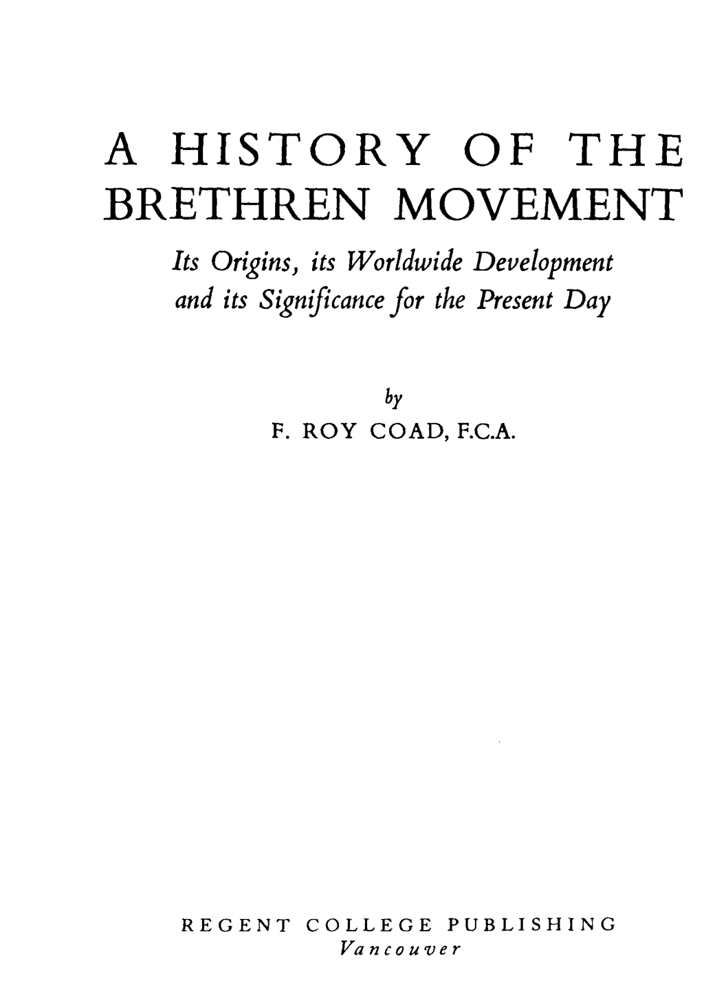 A History of the Brethren Movement: Its Origins, Its Worldwide Development and Its Significance for the Present Day