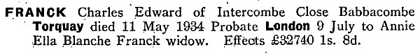 The only Charles Edward Franck I could find who died after 1931 is this one (so he must have remarried):