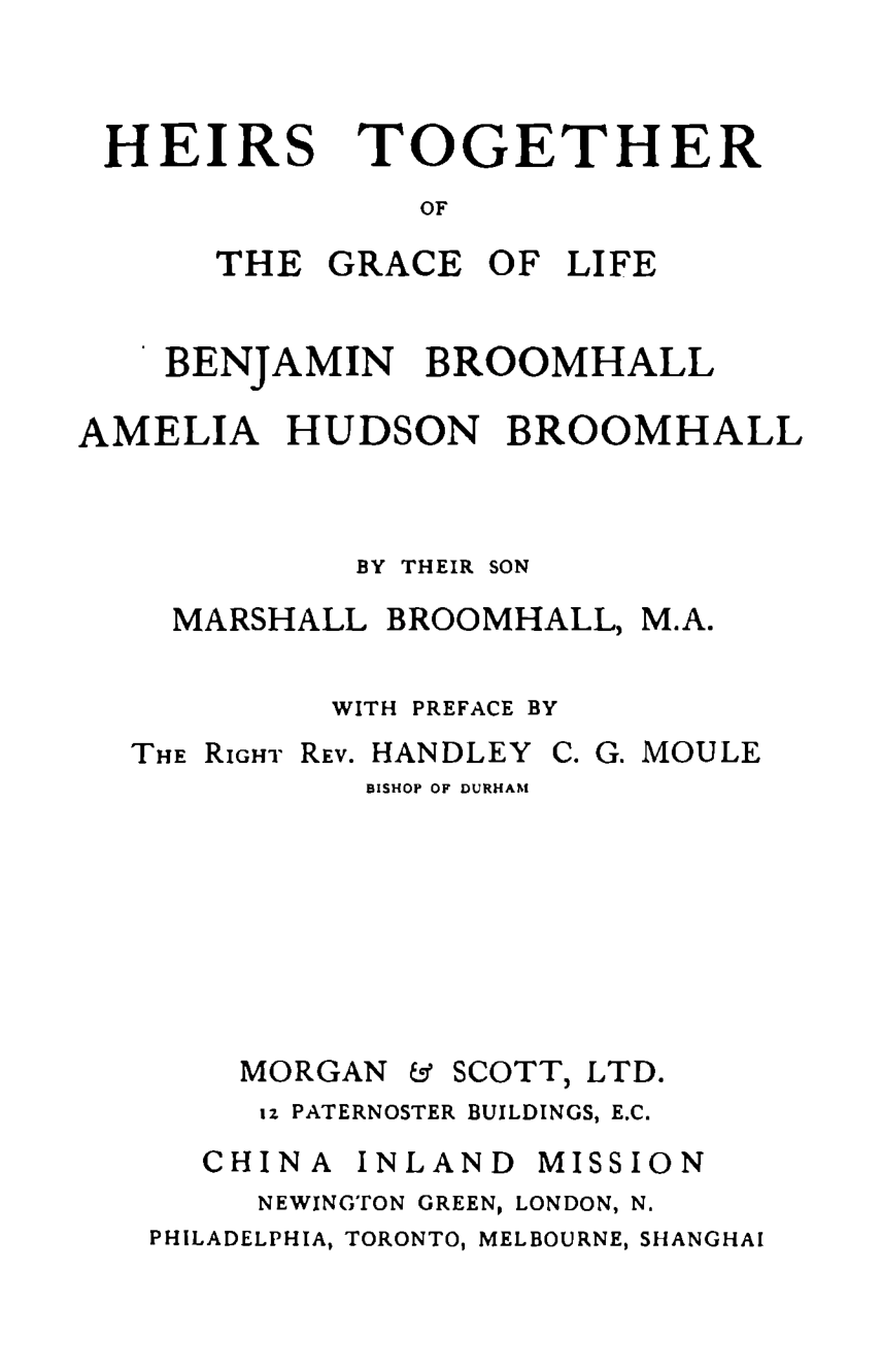 Heirs Together of the Grace of Life; Benjamin Broomhall & Amelia Hudson Broomhall