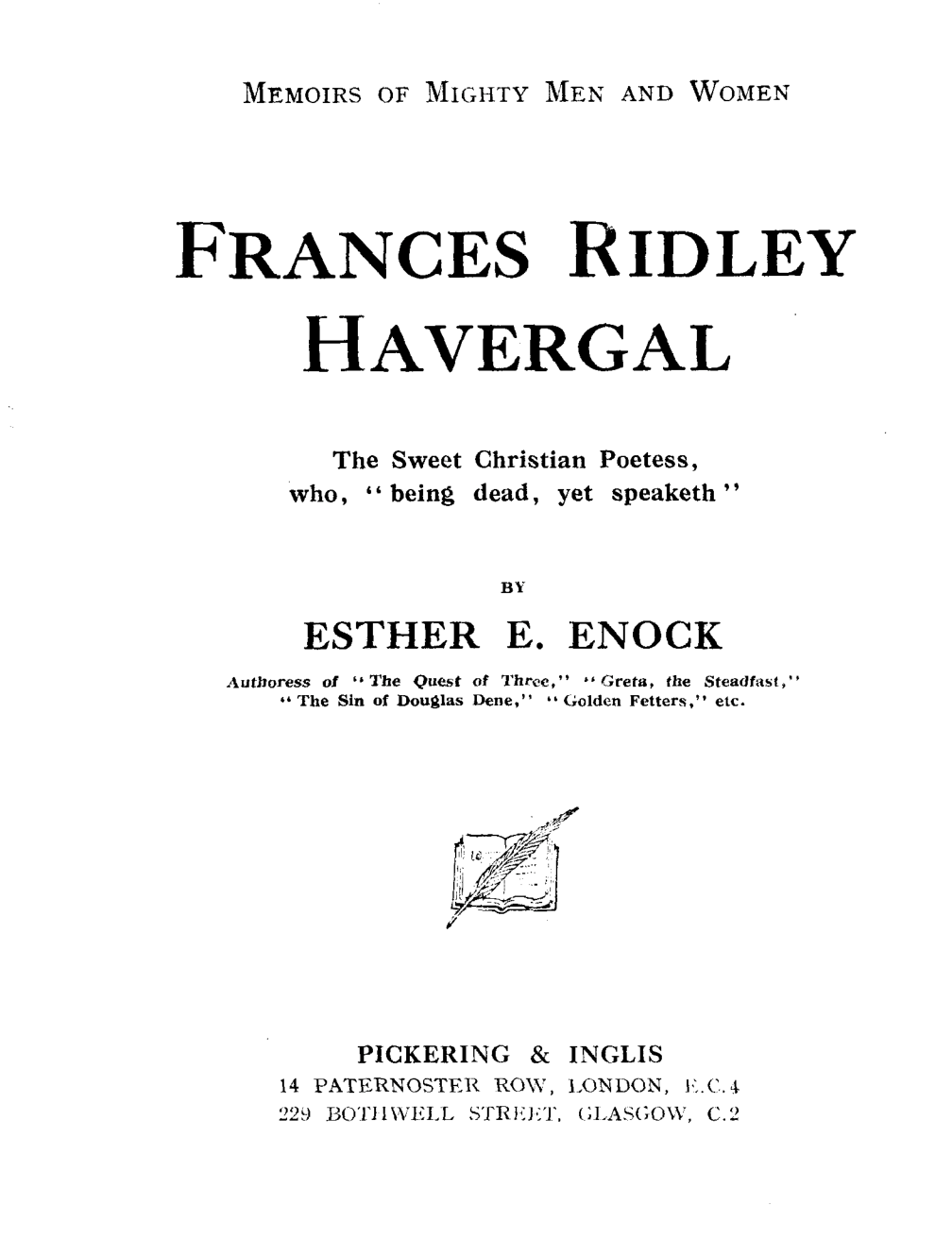 23 - Frances Ridley Havergal: The Sweet Christian Poetess, who, "being dead, yet speaketh".