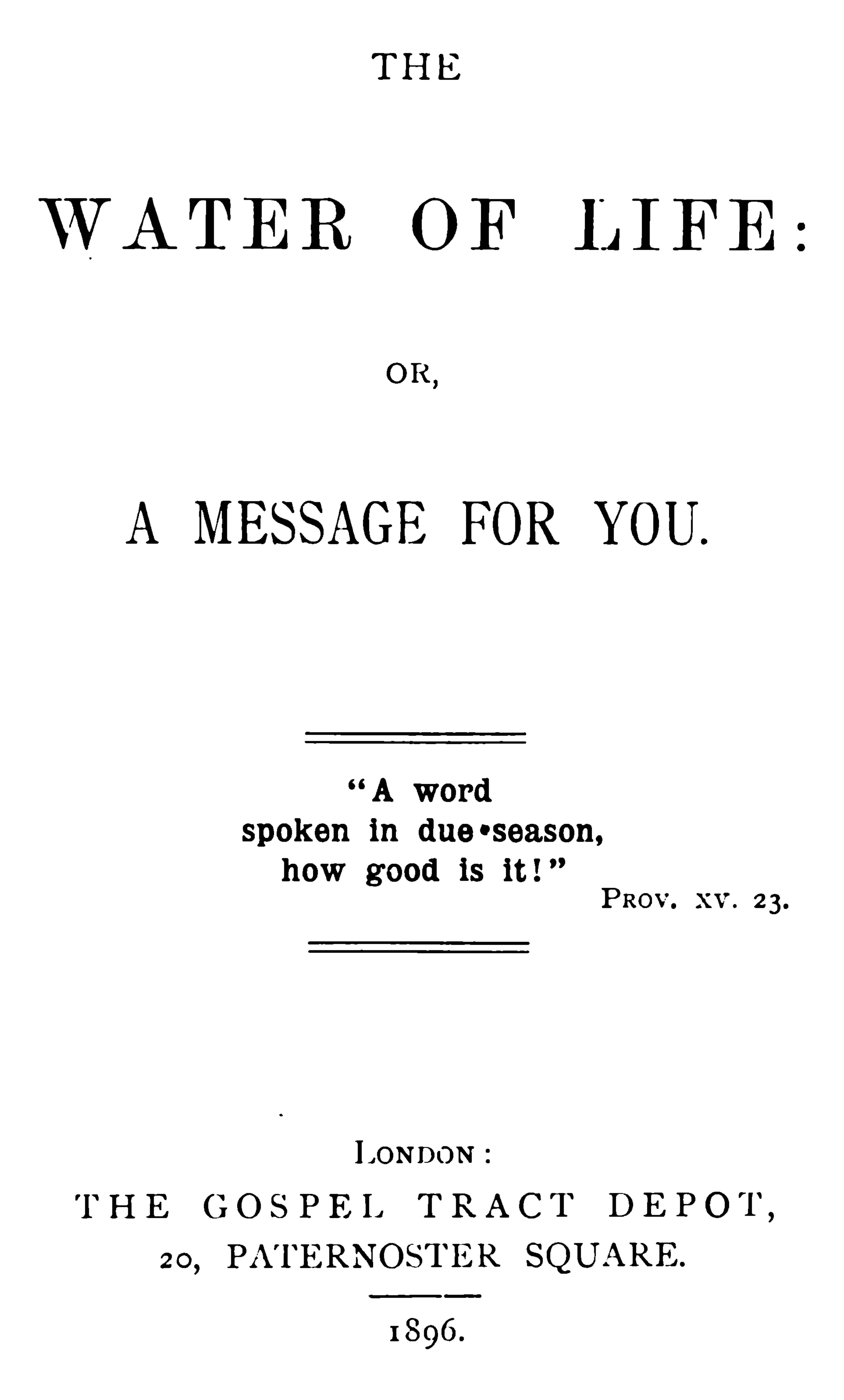 The Water of Life: Or, A Message for You