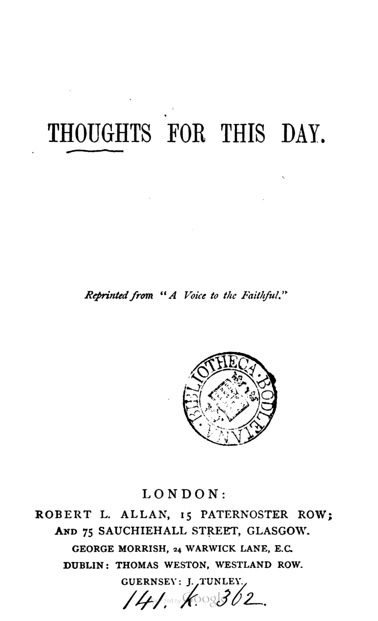 Thoughts for this Day; Reprinted from A Voice to the Faithful