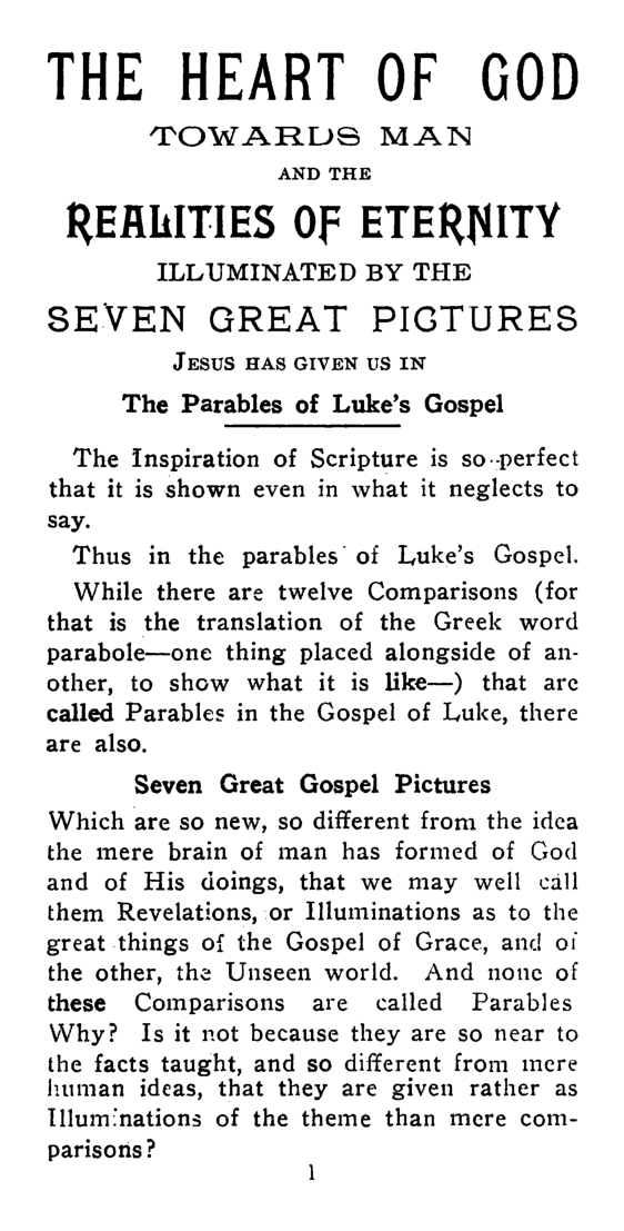 The Heart of God Towards Man and the Realities of Eternity Illuminated by the Seven Great Pictures Jesus Has Given Us in the Parables of Luke’s Gospel